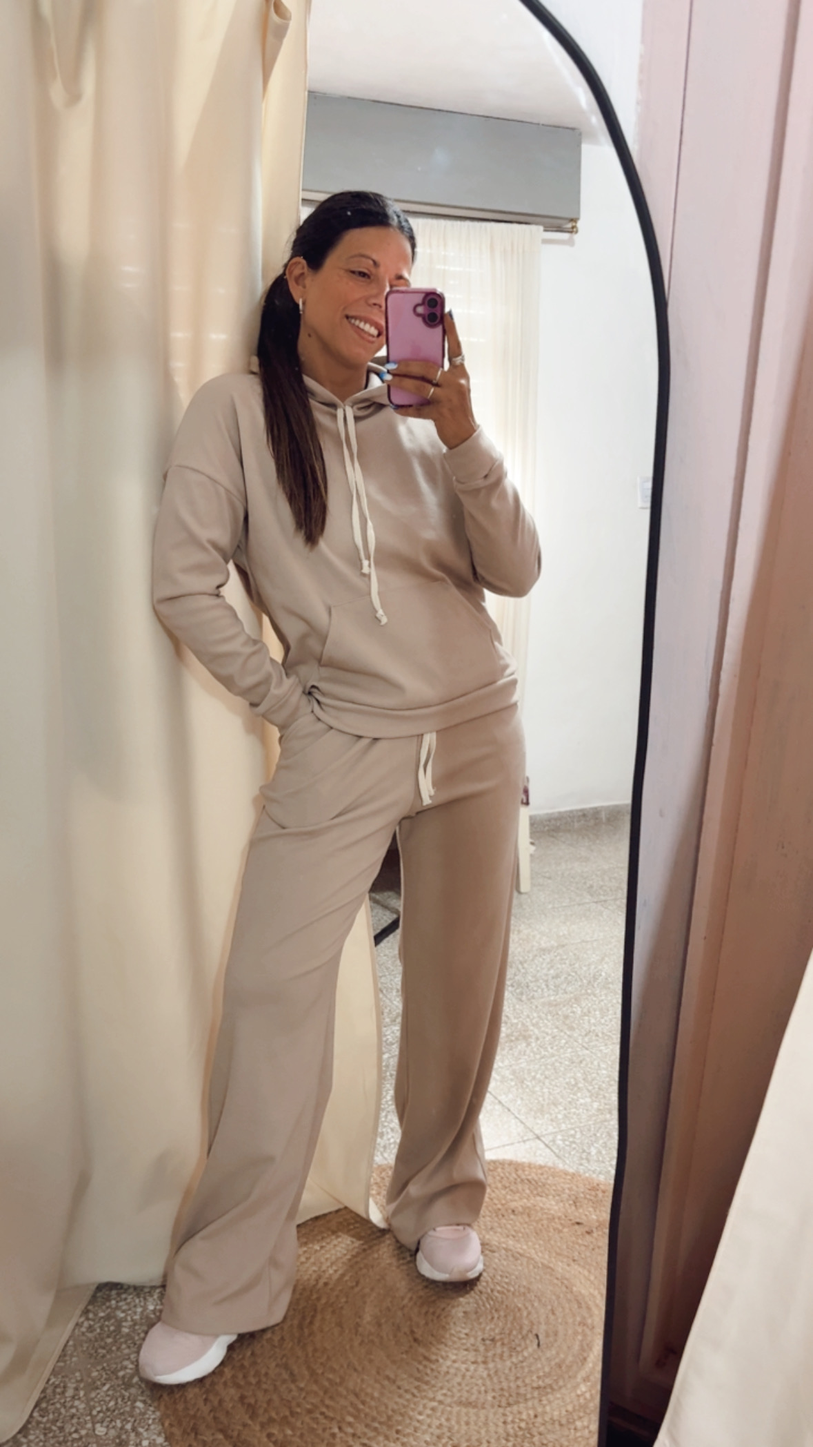 Comodidad y estilo en un mismo look. Este conjunto está confeccionado en tela Darlon, súper suave y calentita, ideal para acompañarte en la nueva temporada. Incluye un buzo estilo cangurito con capucha y bolsillo frontal, perfecto para un look relajado, y un pantalón palazzo con cintura elastizada y bolsillos que aporta comodidad y una caída amplia muy favorecedora.