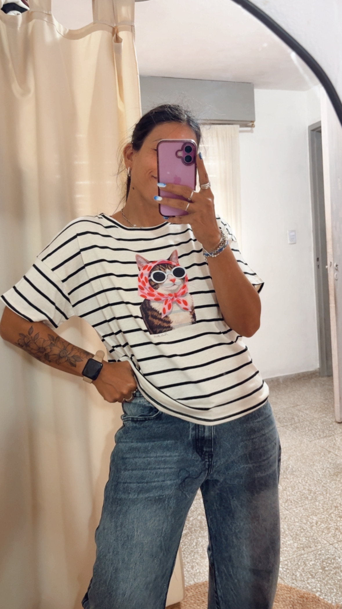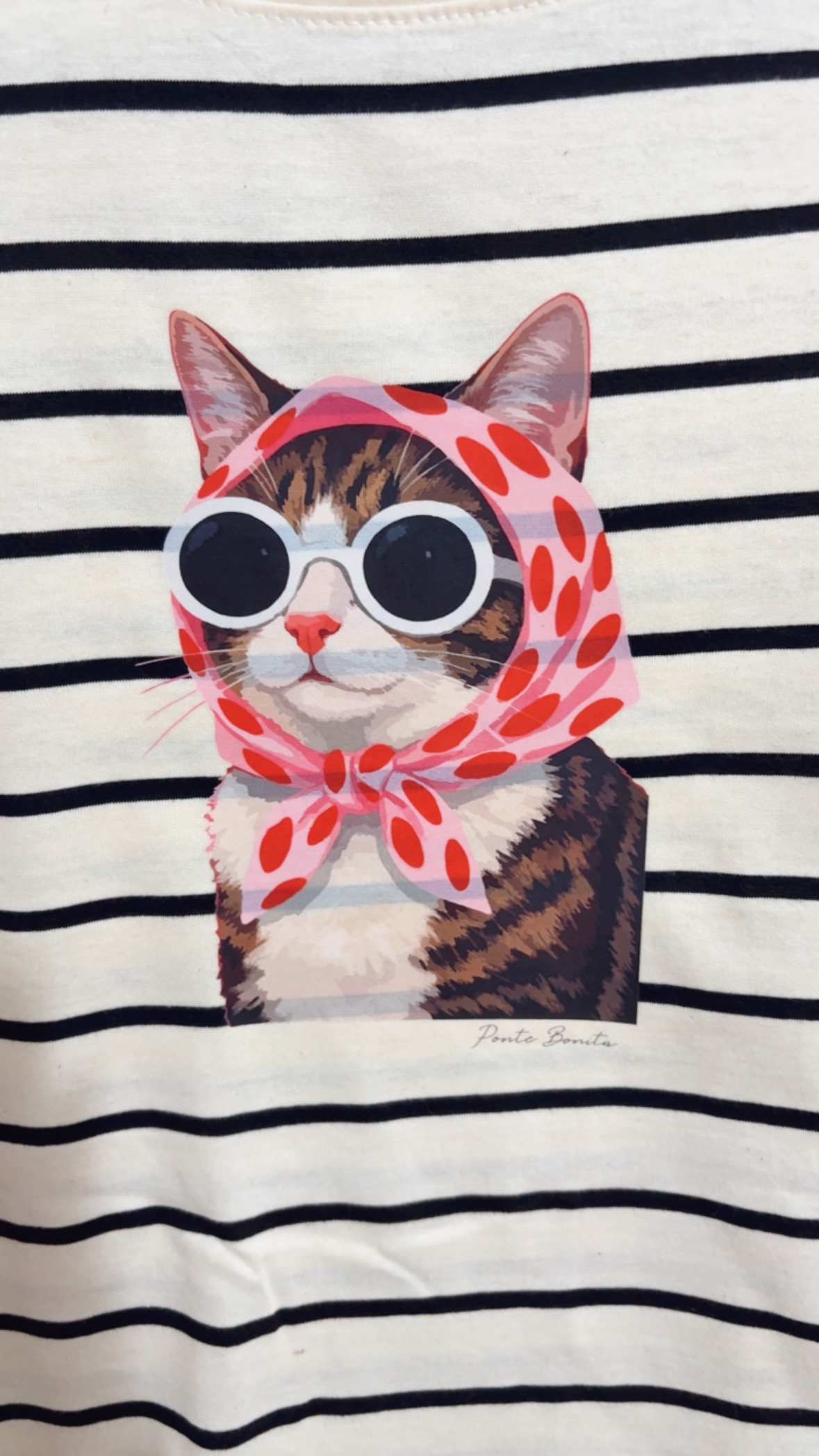 Cada prenda fue intervenida con estampas seleccionadas y colocadas por Ponte Bonita, lo que las convierte en piezas únicas dentro de la colección. El rayado clásico y atemporal se combina con detalles que aportan personalidad, logrando remeras versátiles, cancheras y fáciles de combinar para armar looks con estilo.