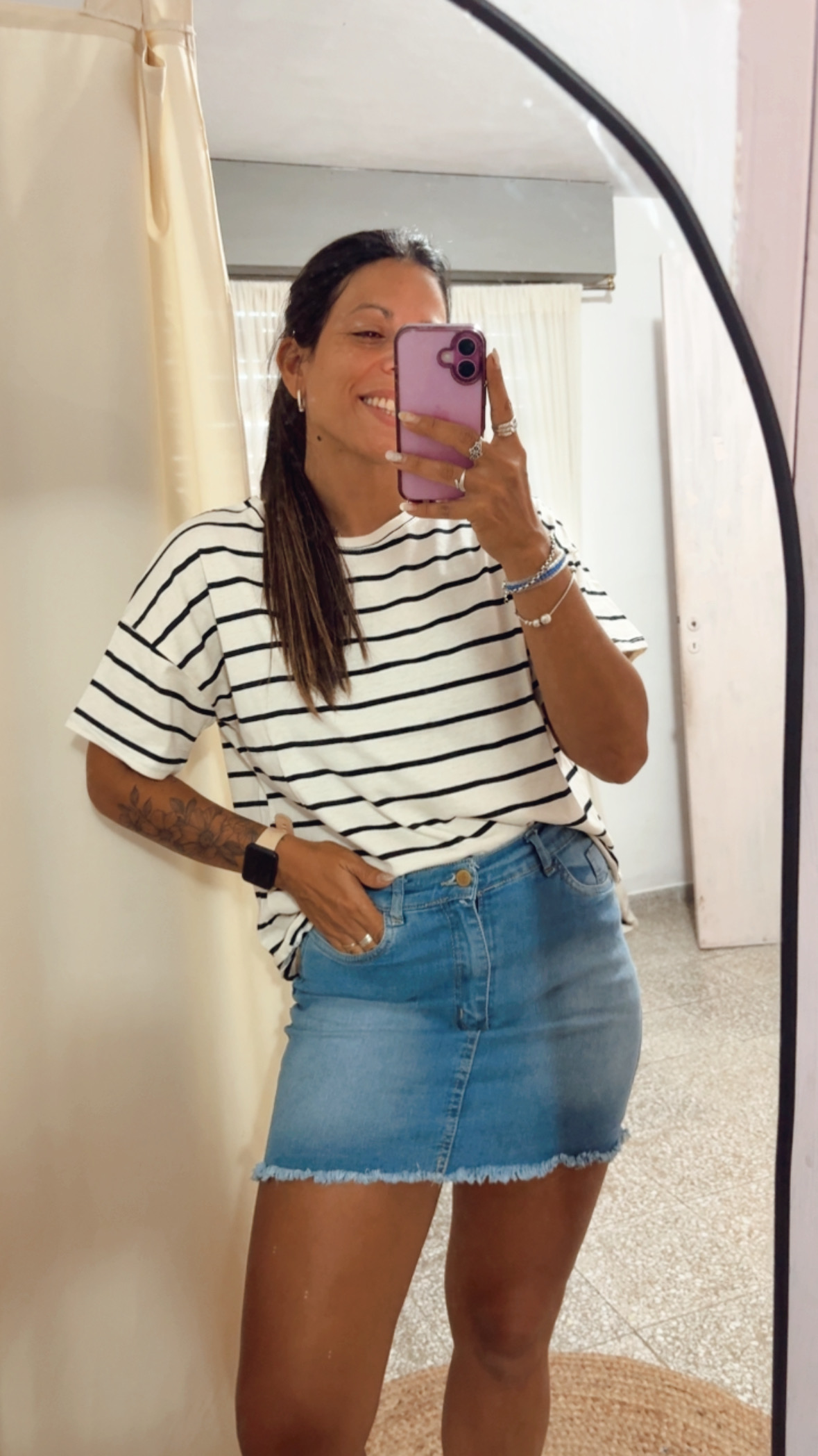 Esta remera rayada está confeccionada en algodón de excelente calidad, es suave y cómoda para el uso diario.